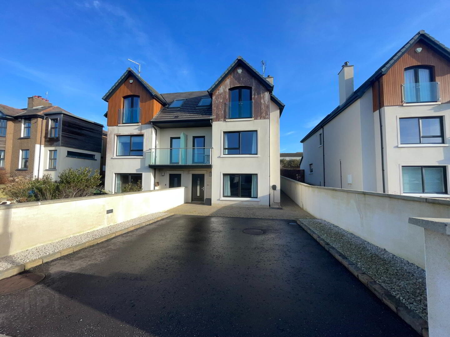 Step inside to discover an impressive layout designed for modern living. The heart of the home is found on the middle floor, where a spacious lounge capitalises on the elevated position, offering sea views the perfect setting to relax, entertain or simply watch the sunset over the coast. The property boasts an exceptional level of finish throughout, with high spec. fixtures, sleek interiors and thoughtful touches at every turn. A stylish kitchen with integrated appliances, and separate utility room off the kitchen.